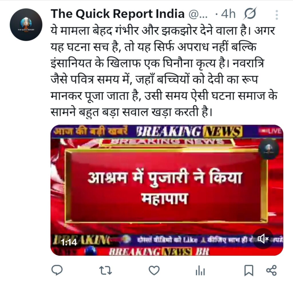 ये मामला बेहद गंभीर और झकझोर देने वाला है। अगर यह घटना सच है, तो यह सिर्फ अपराध नहीं बल्कि इंसानियत के खिलाफ एक घिनौना कृत्य है। नवरात्रि जैसे पवित्र समय में, जहाँ बच्चियों को देवी का रूप मानकर पूजा जाता है, उसी समय ऐसी घटना समाज के सामने बहुत बड़ा सवाल खड़ा करती है।
