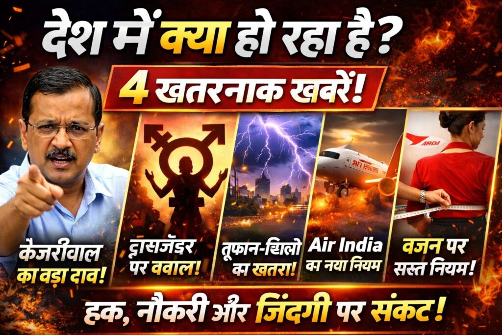 Air India अब नौकरी सिर्फ आपकी मेहनत पर नहीं आपके शरीर पर भी निर्भर करेगी  Cabin crew का वजन चेक होगा BMI लिमिट से ज्यादा हुआ तो सैलरी कट और जरूरत पड़ी तो नौकरी भी जा सकती है क्या अब इंसान की कीमत उसकी काबिलियत नहीं बल्कि उसके वजन से तय होगी? एक तरफ नेता खुद सिस्टम से लड़ रहा है दूसरी तरफ आम लोग अपने अधिकारों के लिए लड़ रहे हैं प्रकृति अपना रूप बदल रही है और सिस्टम अब इंसान की जिंदगी तय करने लगा है क्या ये सिर्फ खबरें हैं या आने वाले समय की चेतावनी?”आज की ये 4 खबरें शायद आपको अलग-अलग लगें लेकिन अगर ध्यान से देखोगे तो ये एक ही कहानी बता रही हैं कि देश बदल रहा है और इस बदलाव का असर… आप पर भी पड़ने वाला है